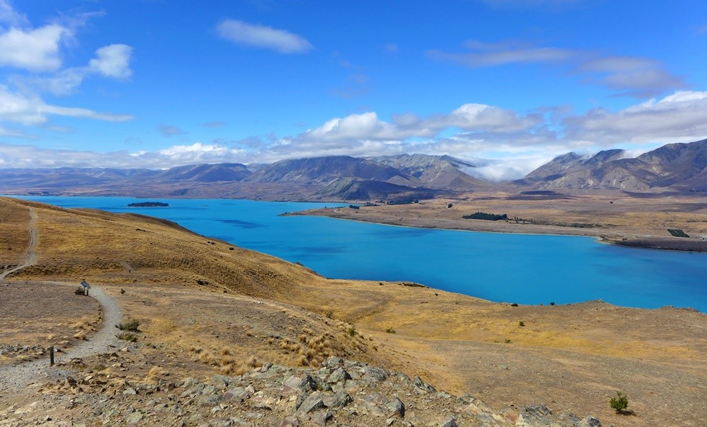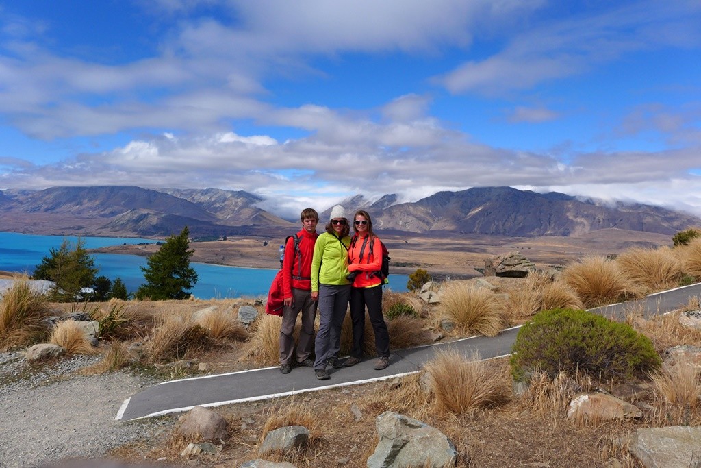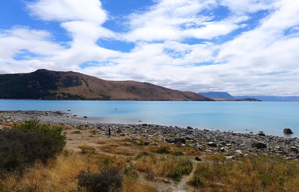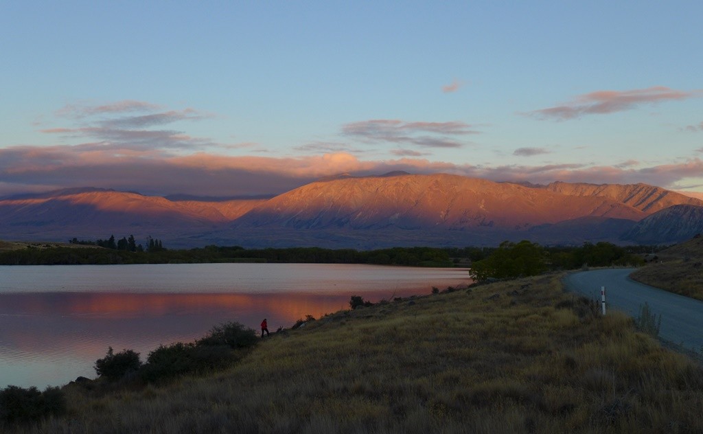 V sympatickém městečku Geraldine jsme navštívili sobotní trh, nakoupili bio jogurtová mléka z blízké farmy, poslechli si místní kapelu a už jsme si to šinuli do oblasti zvané Makenzie Country. Jako první se nám do cesty postavilo zářivě modré jezero Tekapo. Oči nám jen přecházeli. Poobědvali jsme na jeho břehu s výhledem na fotogenický kostel a odpoledne jsme příjemnou procházkou vystoupali k místní hvězdárně sídlící na vrcholu Mount John. Ačkoliv jsme se ráno probudili do deštivého počasí, odpoledne se oblaka roztrhala a mýdlem okořeněné jezero Tekapo odhalilo – v kontrastu s přilehlými horami – svou barevnou tvář. Nicméně 50 kilometrů vzdálený Mount Cook naším očím díky mlze stále odolával. Přespali jsme na břehu nedalekého jezera McGregor a doufali, že ráno se nám nejvyšší hora Nového Zélandu odhalí v celé své kráse.